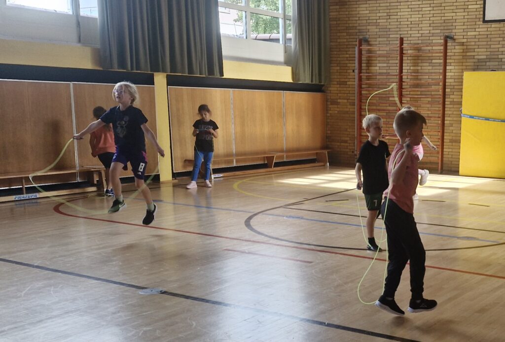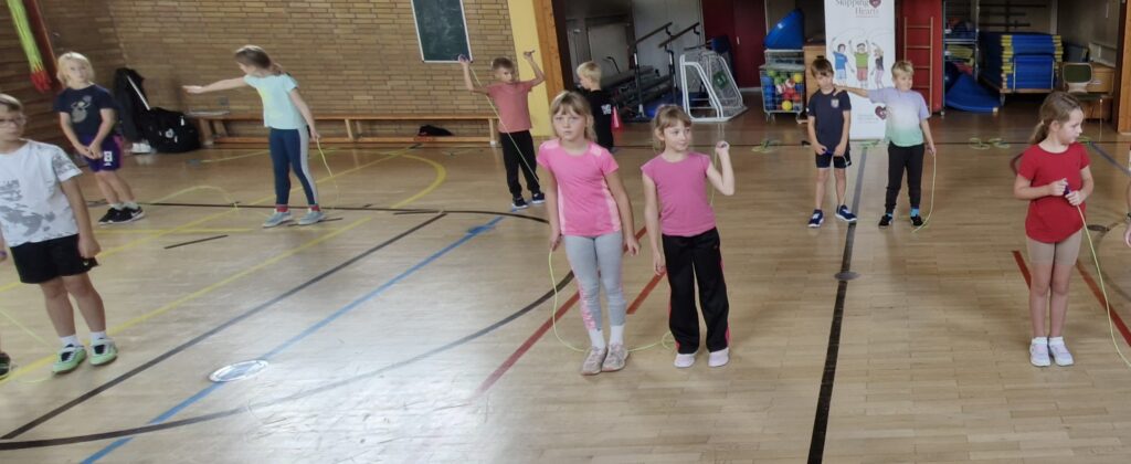 Unter der Anleitung von Filip Panic, einem erfahrenen Workshopleiter, lernten die Kinder von 9:00 bis 11:00 Uhr verschiedene Seilsprungtechniken kennen – von einfachen Grundsprüngen bis hin zu kleinen Choreografien. Ein besonderes Highlight war das „Long Rope“, bei dem die ganze Klasse gemeinsam ins Seil sprang – mit viel Teamgeist, Konzentration und jeder Menge Spaß.
